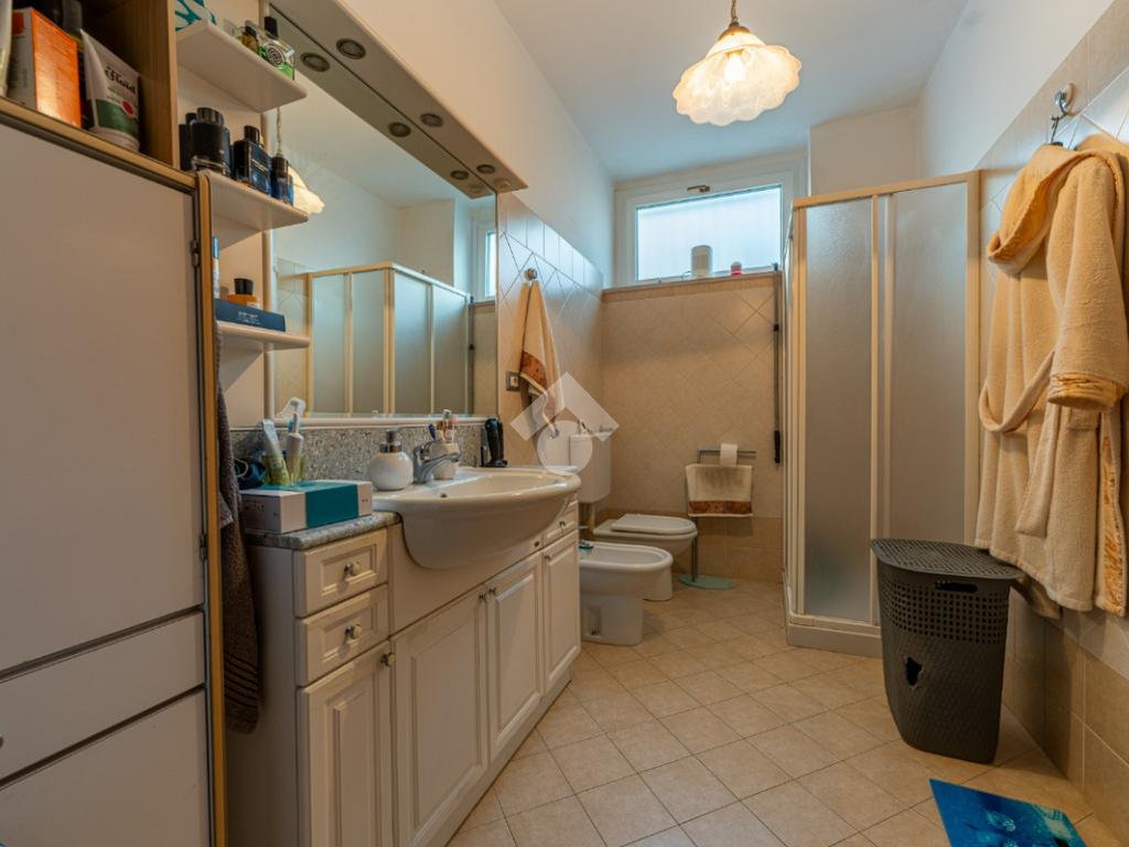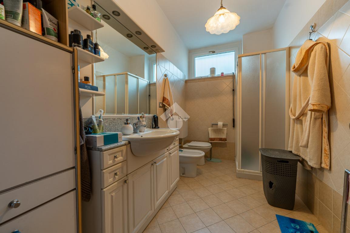 Il bagno finestrato è dotato di box doccia.