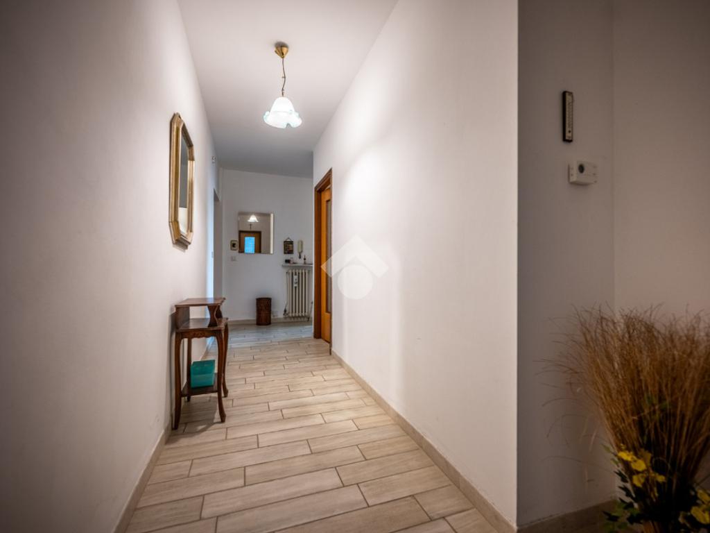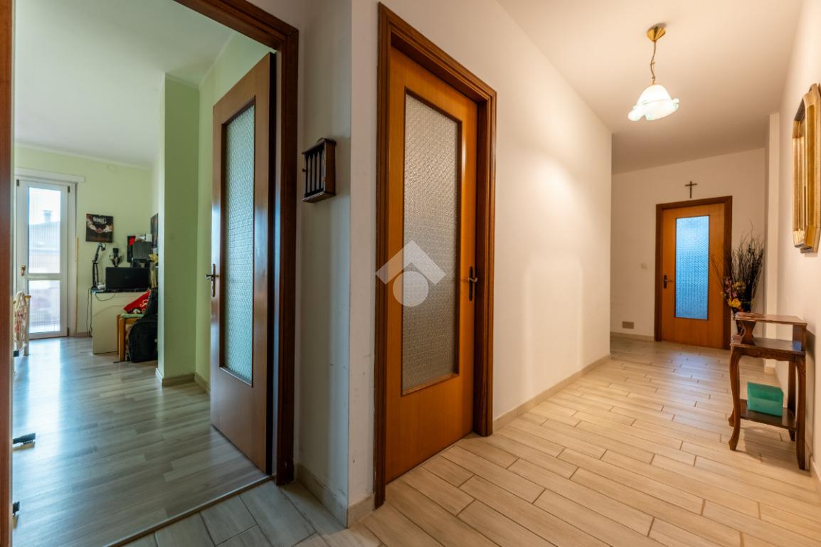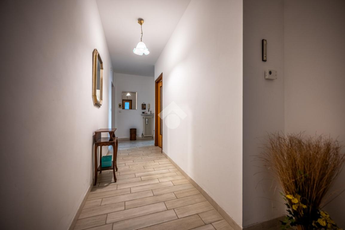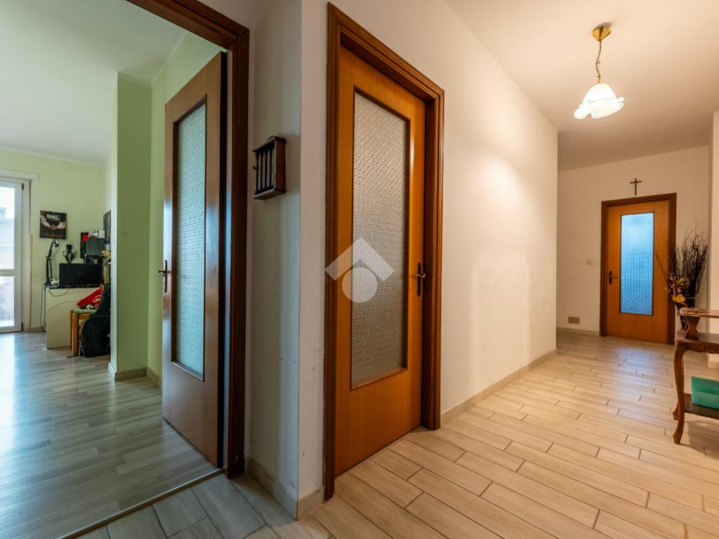 L’ingresso si apre su un comodo disimpegno che accompagna a tutti gli ambienti dell’abitazione.