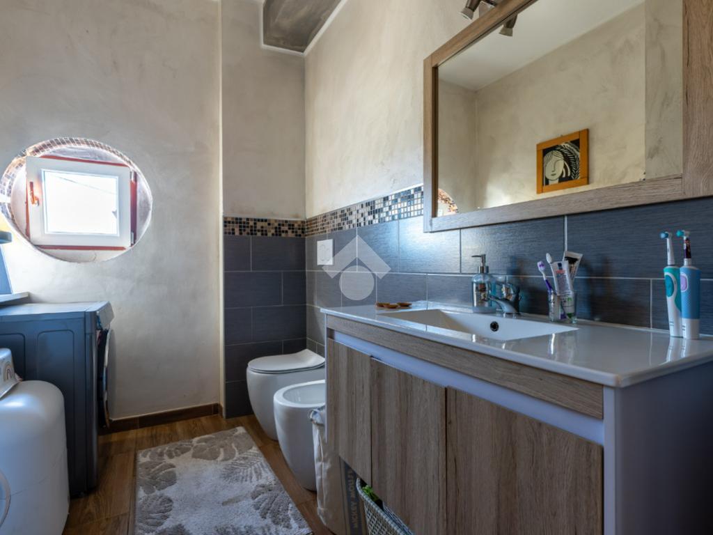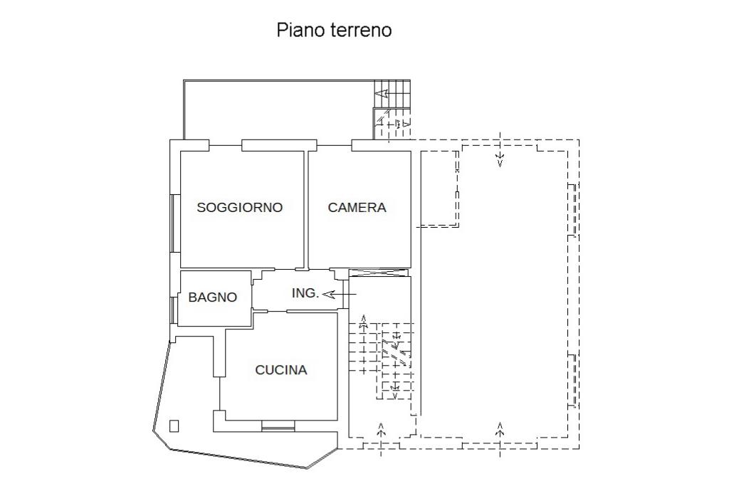 Al piano terra l'appartamento è composto da cucina, soggiorno, una camera da letto e bagno finestrato con box doccia;