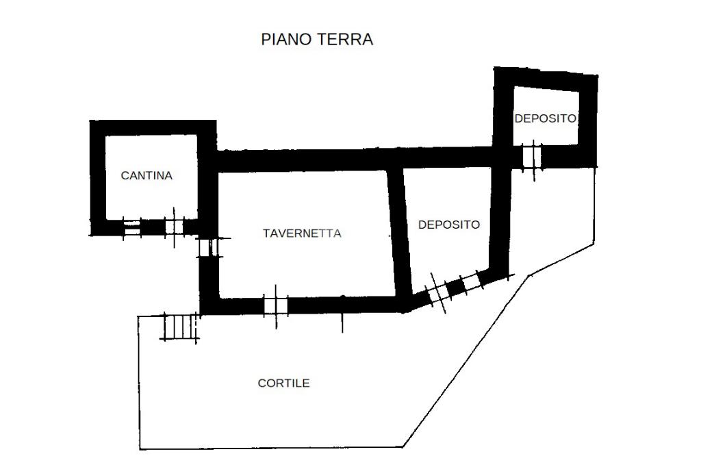 - Piano terreno: caratteristica tavernetta, bagno, stalla, locale deposito e cantina.