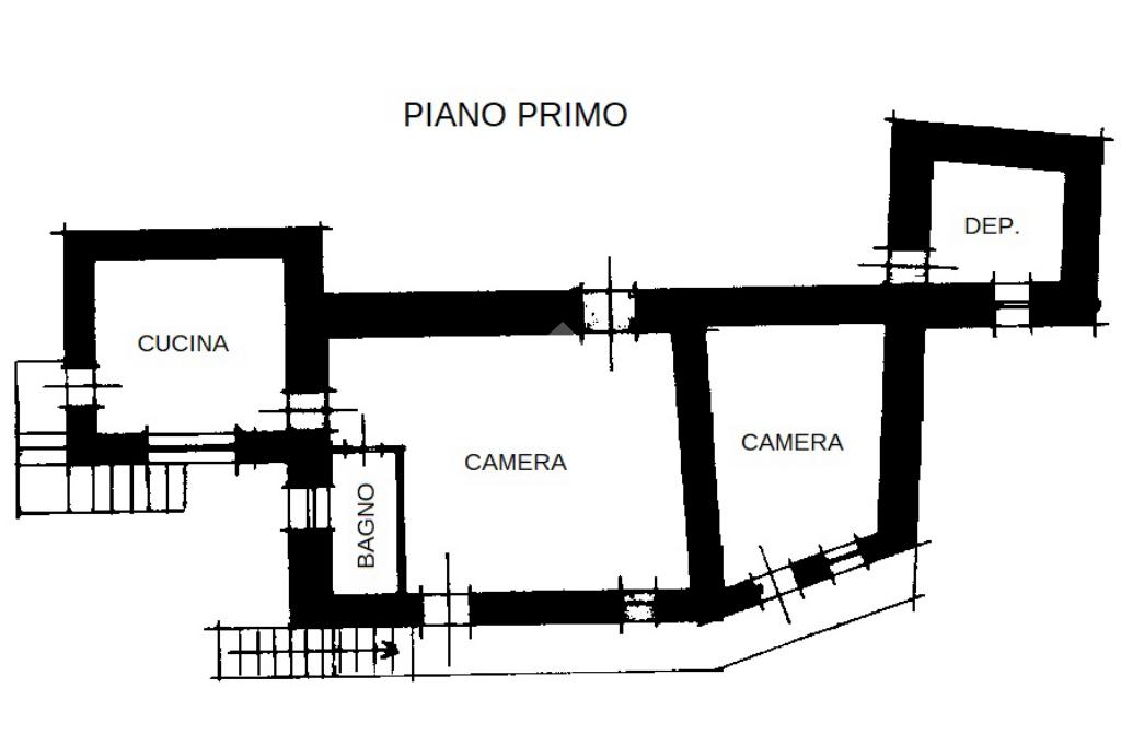 - Piano primo: cucina abitabile, due camere da letto, due bagni e ulteriore locale deposito.