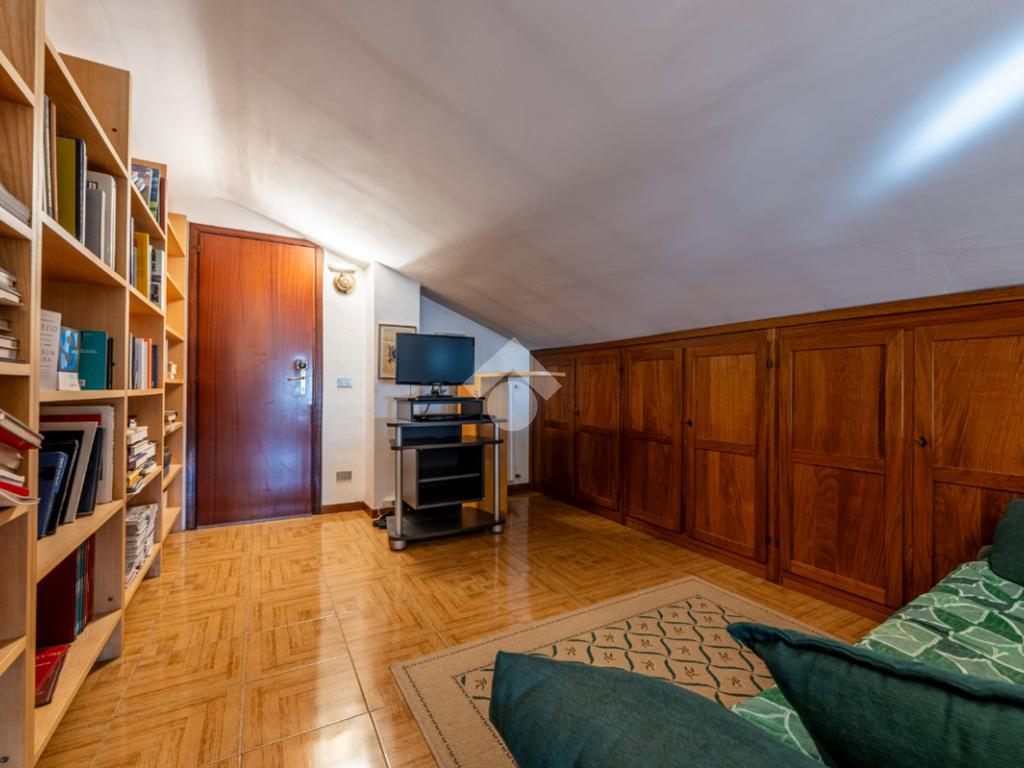 La proprietà ha ottimizzato al meglio gli spazi, realizzando pratiche armadiature a muro che rendono l’abitazione funzionale.