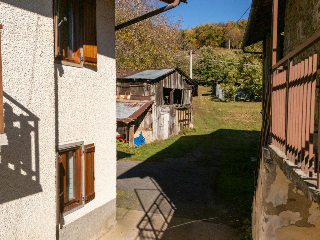 VENASCA - In Via Tetto Violino, a circa 700 metri di altitudine, in posizione tranquilla e immersa nel verde, proponiamo in vendita casa semindipendente libera su tre lati e disposta su due livelli, con terreni di pertinenza.